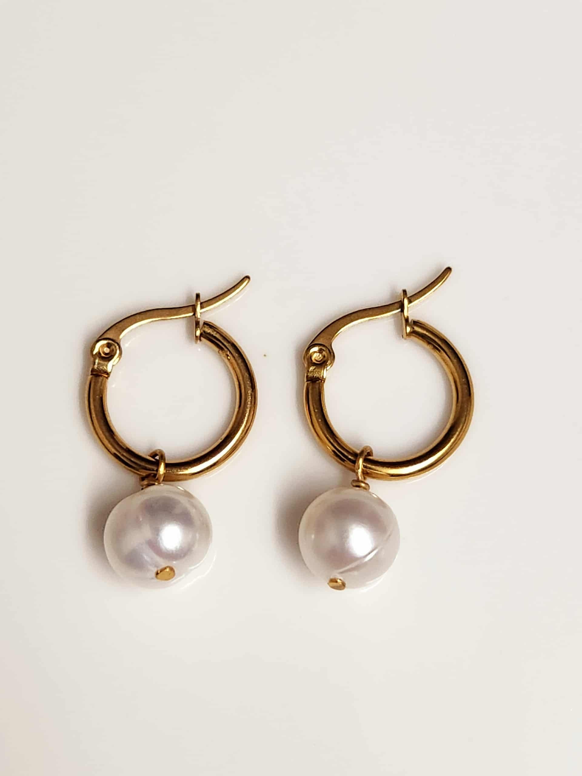Iris Gardenia Pearl Hoop Earrings