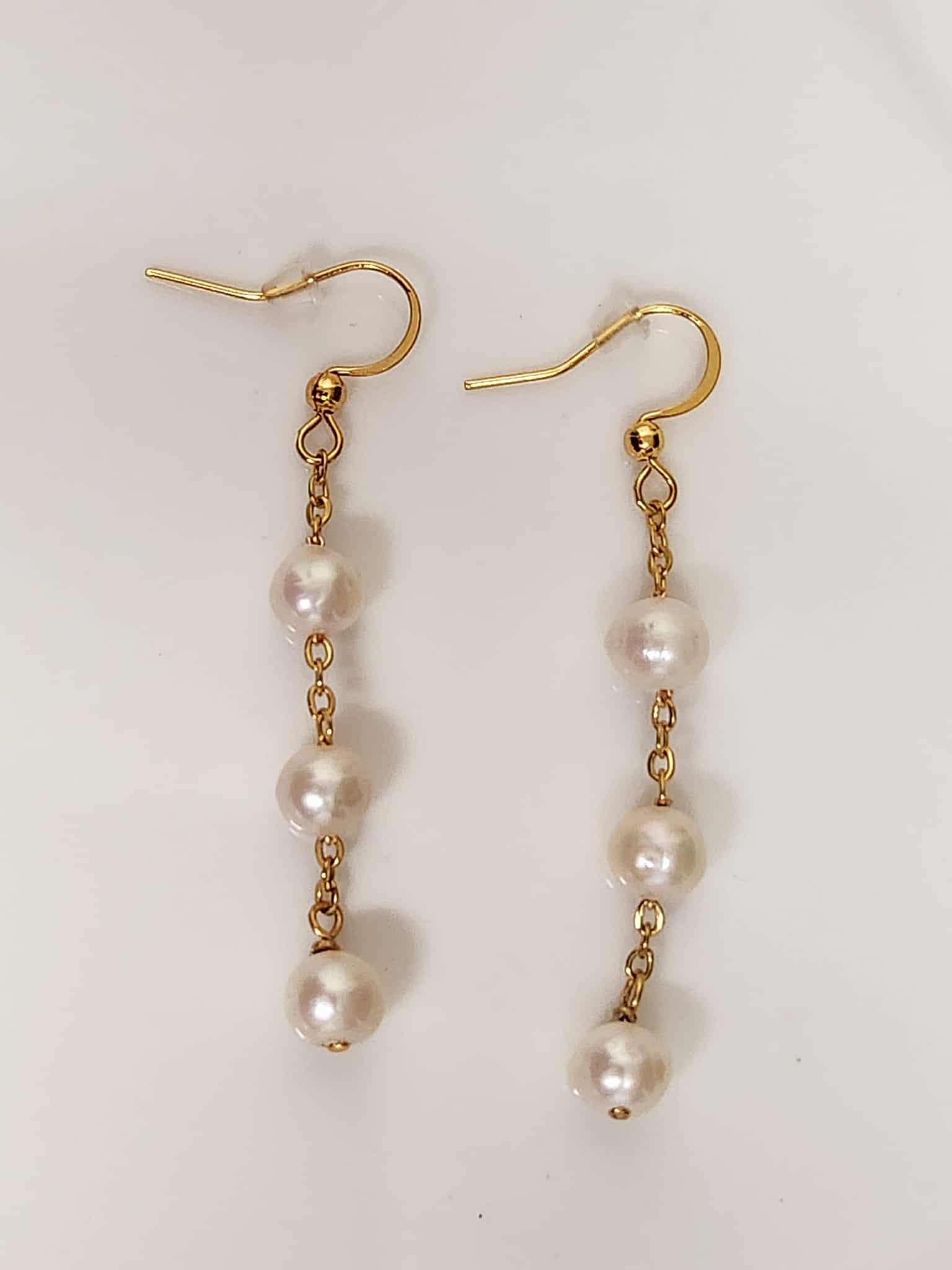 Four luminous freshwater pearls are linked along a fine gold-plated chain, creating a soft, flowing drop that moves elegantly with every step. Much like the orchid, these earrings symbolize elegance, strength, and timeless femininity.